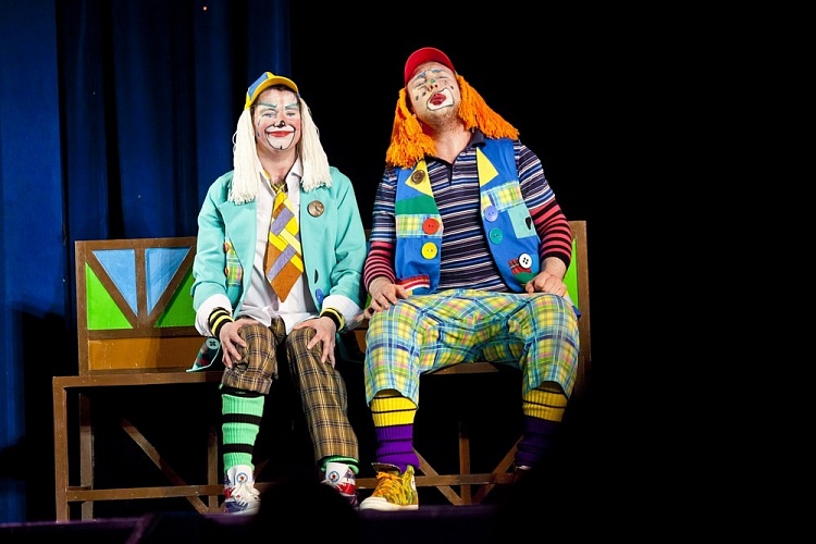 Главные персонажи спектакля – клоуны, опоздавшие на поезд, и вынужденные зарабатывать на билет самостоятельно, без цирка, рассказывая самые невероятные истории, играя со зрителями во всевозможные игры и считалочки.