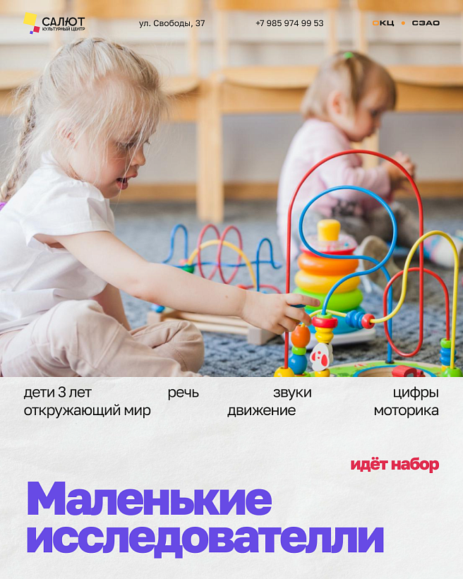 В культурном центре «Салют» в студии интеллектуального и творческого развития «Теремок» открыт набор в группу для детей от 3 до 4 лет