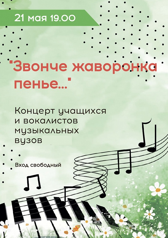 В концерте примут участие вокалисты-выпускники ИСИ и других профессиональных музыкальных вузов. В программе прозвучат арии и романсы русских и зарубежных композиторов, русские народные и советские эстрадные песни. Исполнители : Оксана Царалунга (сопрано), Евгений Стасенко (баритон), Александра Карамян(сопрано), Алла Равна (меццо-сопрано), Юрий Батунин (баритон), Анна Шапеко и Татьяна Борисова (сопрано).