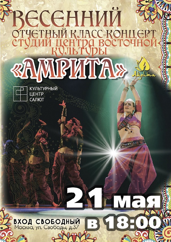 Талантливые ученики Амриты подготовили для вас много ярких и красивых танцевальных номеров. В программе мероприятия индийские, восточные и цыганские танцы, новые постановки и шикарные костюмы. Окунитесь в атмосферу востока и проведите свой день необычно и интересно всей семьей!