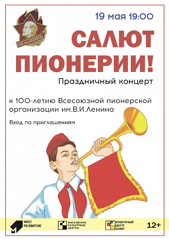 В этом году пионерская организация отмечает 100-летний юбилей! В этот вечер для всех гостей в Культурном центре «Салют» подготовлена интерактивная программа, которая погрузит участников в ностальгические воспоминания детства. А для тех, кто не застал этого периода советской эпохи, будет интересно переместиться в прошлое и узнать для себя что-то новое.