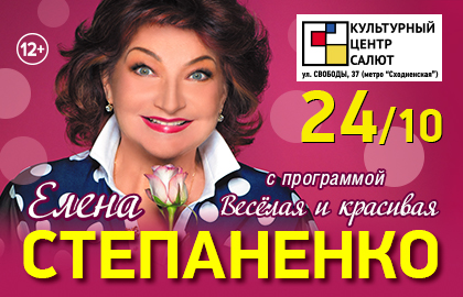 ВНИМАНИЕ! В связи с чрезвычайной эпидемиологической ситуацией и указами Правительства Москвы и Московской области о запретах на проведение культурно-массовых мероприятий численностью более 50 чел. концерт Елены Степаненко «ВЕСЁЛАЯ И КРАСИВАЯ», ранее запланированного на 24.10.2020 года в 19.00, переносится на 27.03. 2021 года в 19.00 на сцене КЦ САЛЮТ
