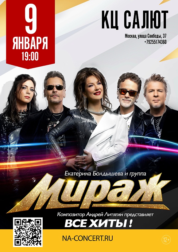 9 января 2026 года в 19:00 концерт группы "Мираж"!