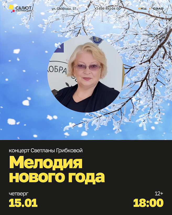 15 января Культурный центр «Салют» приглашает вас на тёплый и душевный вечер, наполненный музыкой, эмоциями и атмосферой настоящего новогоднего волшебства.