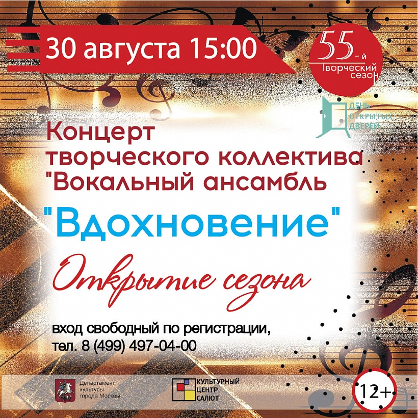 Спешим обрадовать поклонников творчества нашего прославленного вокального ансамбля «Вдохновение»! 30 августа коллектив открывает свой новый творческий сезон.