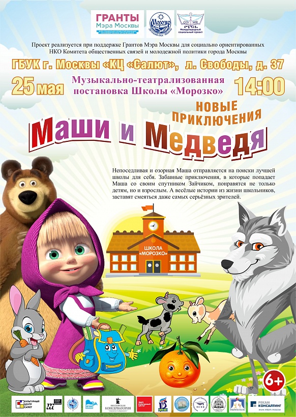 Учащиеся и педагоги Школы «Морозко» представляют музыкальную театрализованную сказку о том, как непоседливая и озорная Маша отправляется на поиски лучшей школы для себя. Забавные приключения, в которые попадает Маша со своим спутником Зайчиком, понравятся не только детям, но и взрослым. А весёлые истории из жизни школьников, заставят смеяться даже самых серьёзных зрителей.