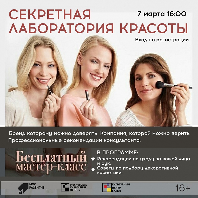 В первый месяц весны, а именно 7.03 и 19.03 в Культурном Центре "Салют" будут проводиться мастер- классы продукции Компании Mary Kay®.