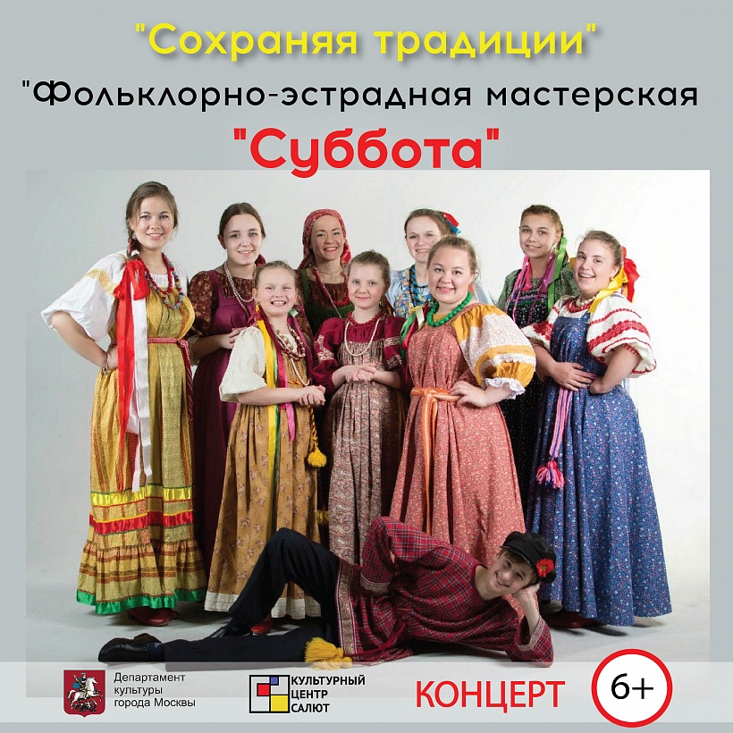 Зрителю будет представлен концерт Ведущего творческого коллектива г. Москвы «Фольклорно-эстрадной мастерской «Суббота». Этот ансамбль – традиционный участник международных и всероссийских фестивалей и конкурсов, столичных праздничных мероприятий.