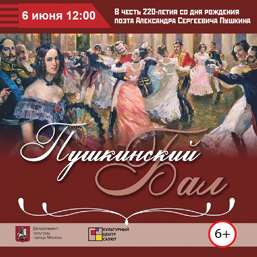 Трансляция мероприятия "Пушкинский бал", который состоялся 07.06.2019 года в усадьбе Строгановых "Братцево" в честь 220-летия со дня рождения поэта Александра Сергеевича Пушкина. Выступали солисты вокальных ансамблей Культурного центра "Салют". Участники бала - учащиеся кадетских классов общеобразовательных школ Тушина.