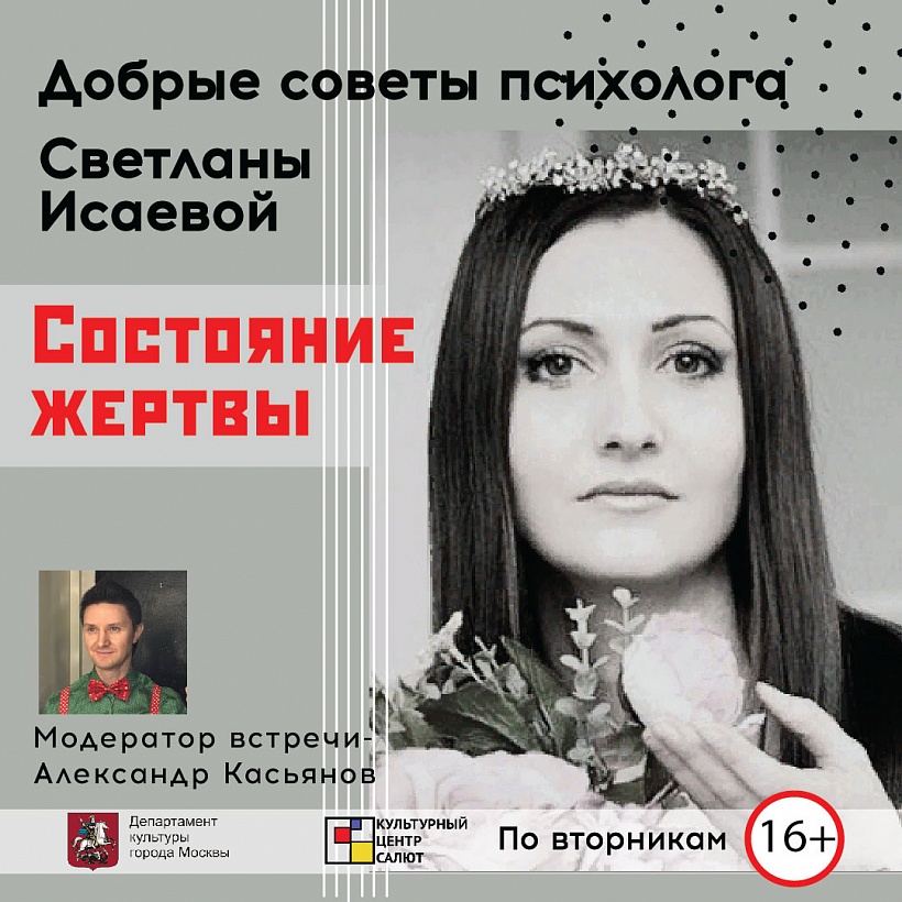 Цикл встреч "Добрые советы в период самоизоляции" с психологом, сексологом и гипнотерапевтом Светланой Исаевой. «Состояние жертвы»