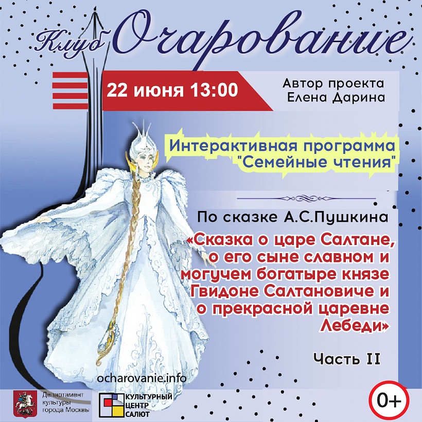 22 июня в 13:00, премьера 2 части видео-книги по сказке Александра Сергеевича Пушкина «Сказка о царе Салтане, о его сыне славном и могучем богатыре князе Гвидоне Салтановиче и о прекрасной царевне Лебеди».