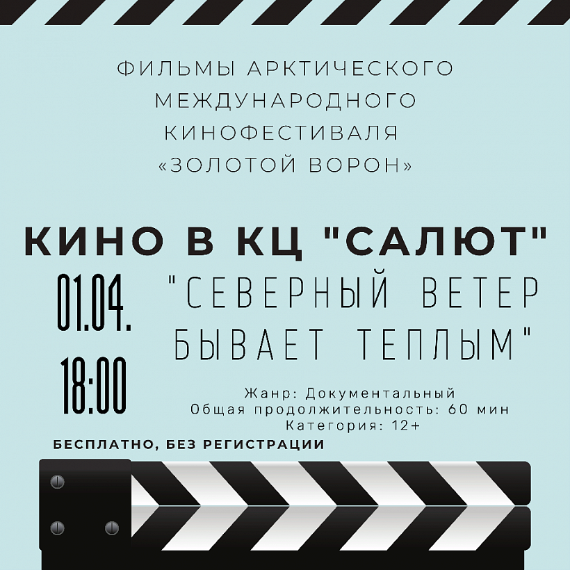 1 апреля в 18:00 в КЦ Салют состоится бесплатный показ документального фильма «Северный ветер бывает тёплым».