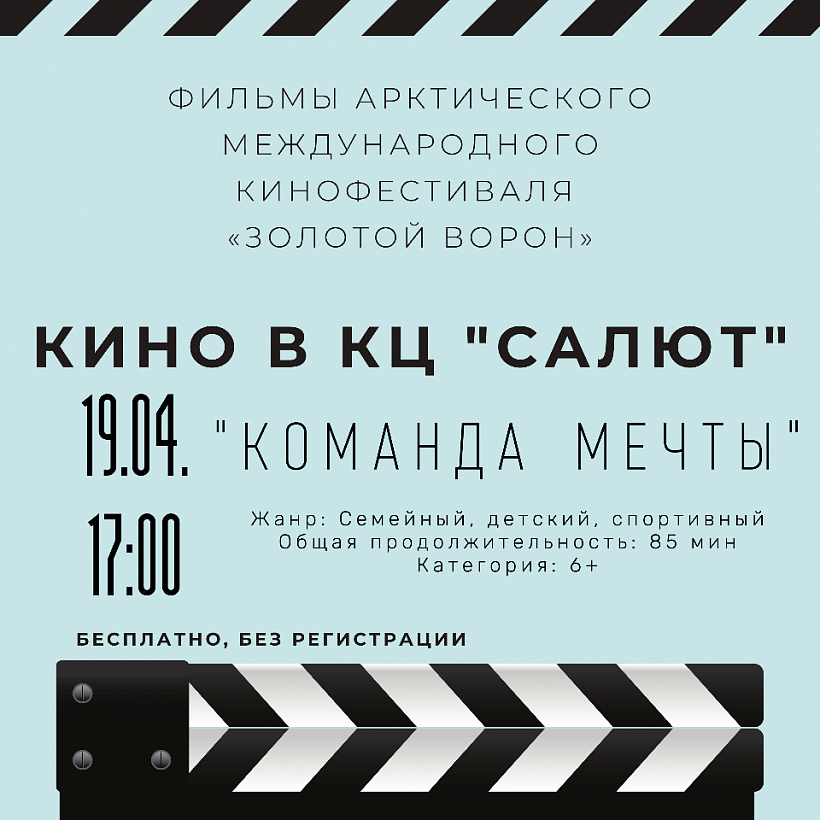 19 апреля в 17:00 КЦ Салют состоится бесплатный показ фильма «Команда мечты».