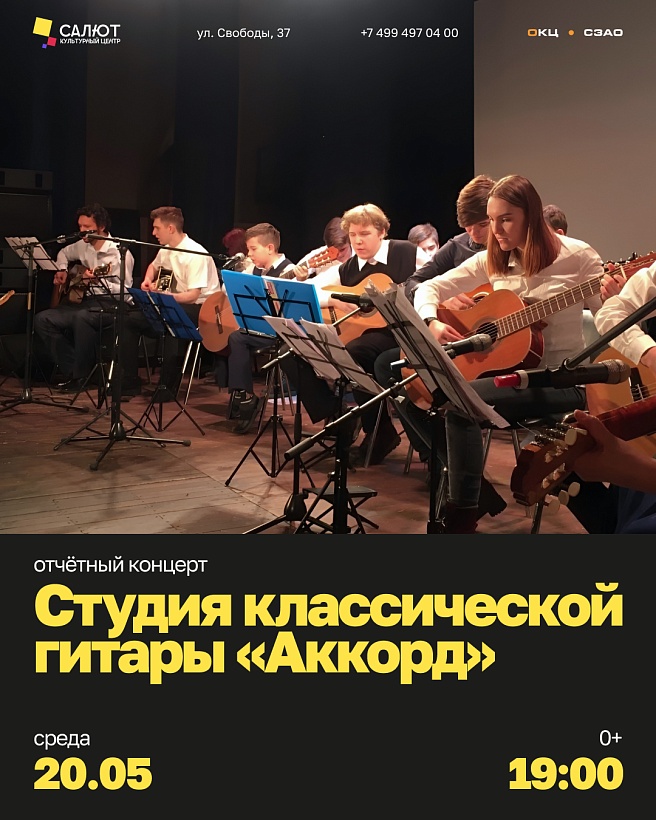 Студия классической гитары «Аккорд» КЦ «Салют» — это более 40 лет традиций, творчества и любви к музыке. Здесь делают первые шаги, открывают талант и учатся говорить с миром через звук