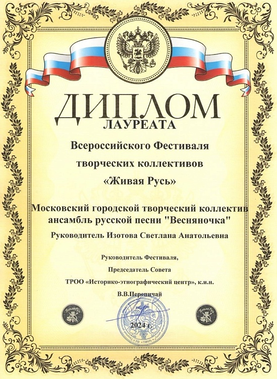Поздравляем Ансамбль русской песни "Весняночка" и желаем дальнейших творческих успехов!