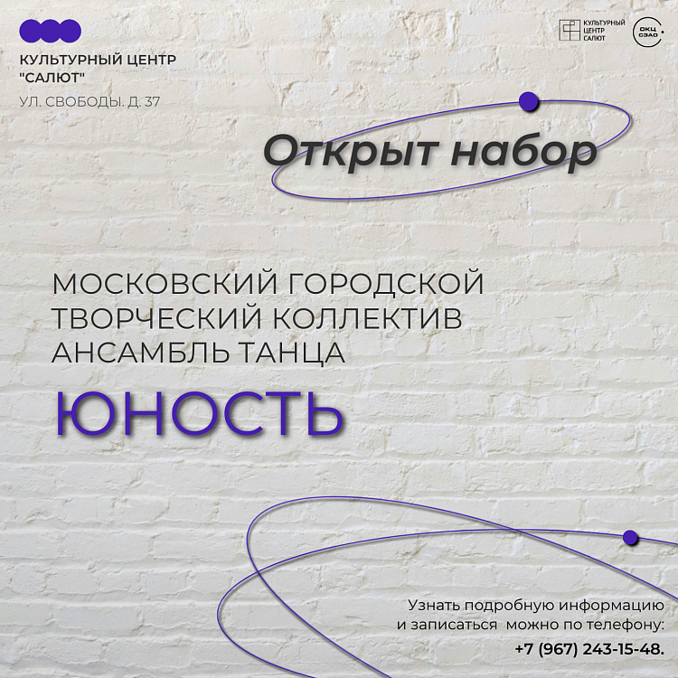 Московский городской творческий коллектив "Ансамбль танца ЮНОСТЬ" открывает свой 44-й творческий сезон!