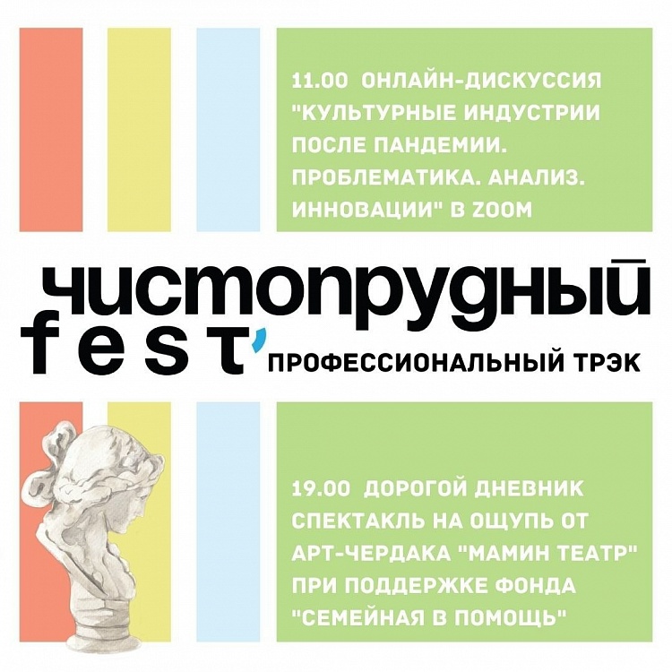 12 и 13 сентября в Москве пройдет городской фестиваль Чистопрудный Fest, приуроченный к Дню города. В этом году сразу в двух форматах – на площадке Дома культура "Гайдаровец" на Земляном валу и онлайн в Zoom и соцсетях.